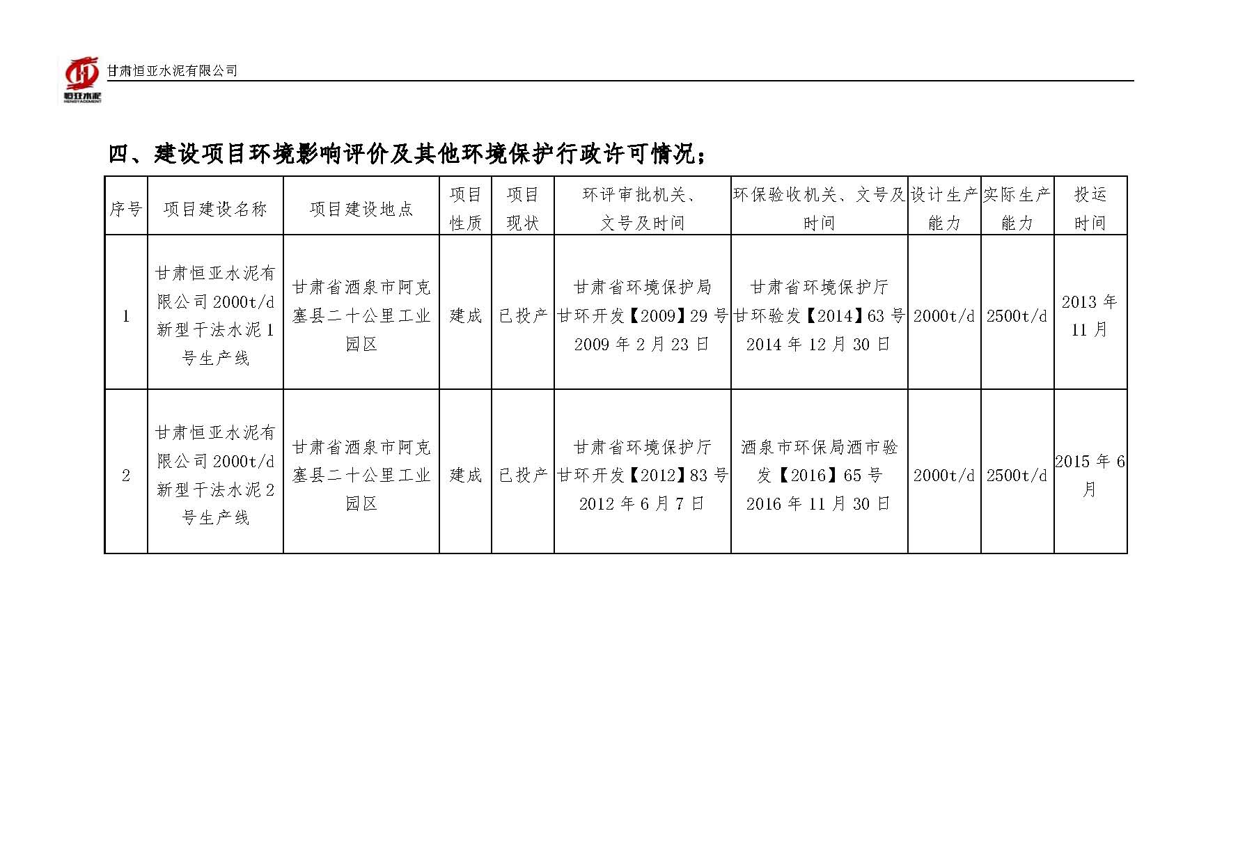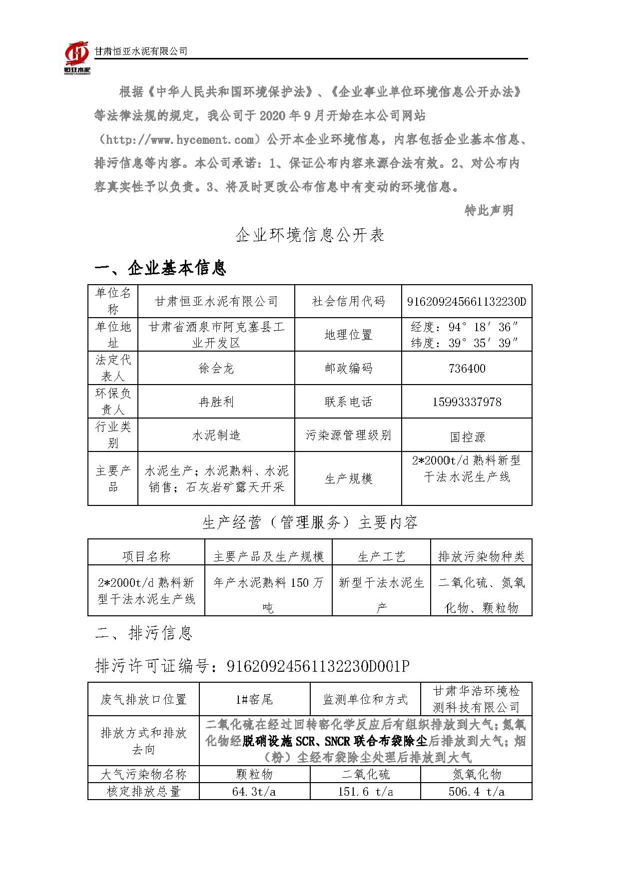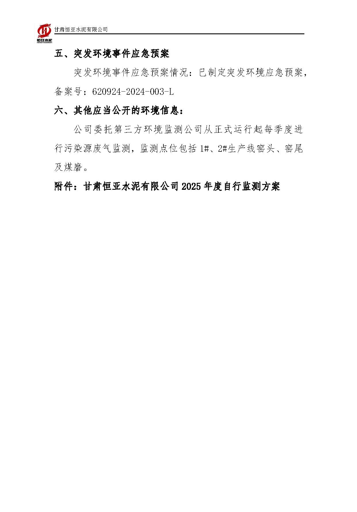 2025甘肃恒亚水泥有限公司环境信息公开