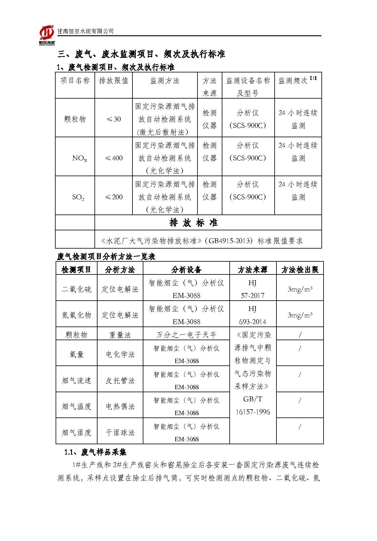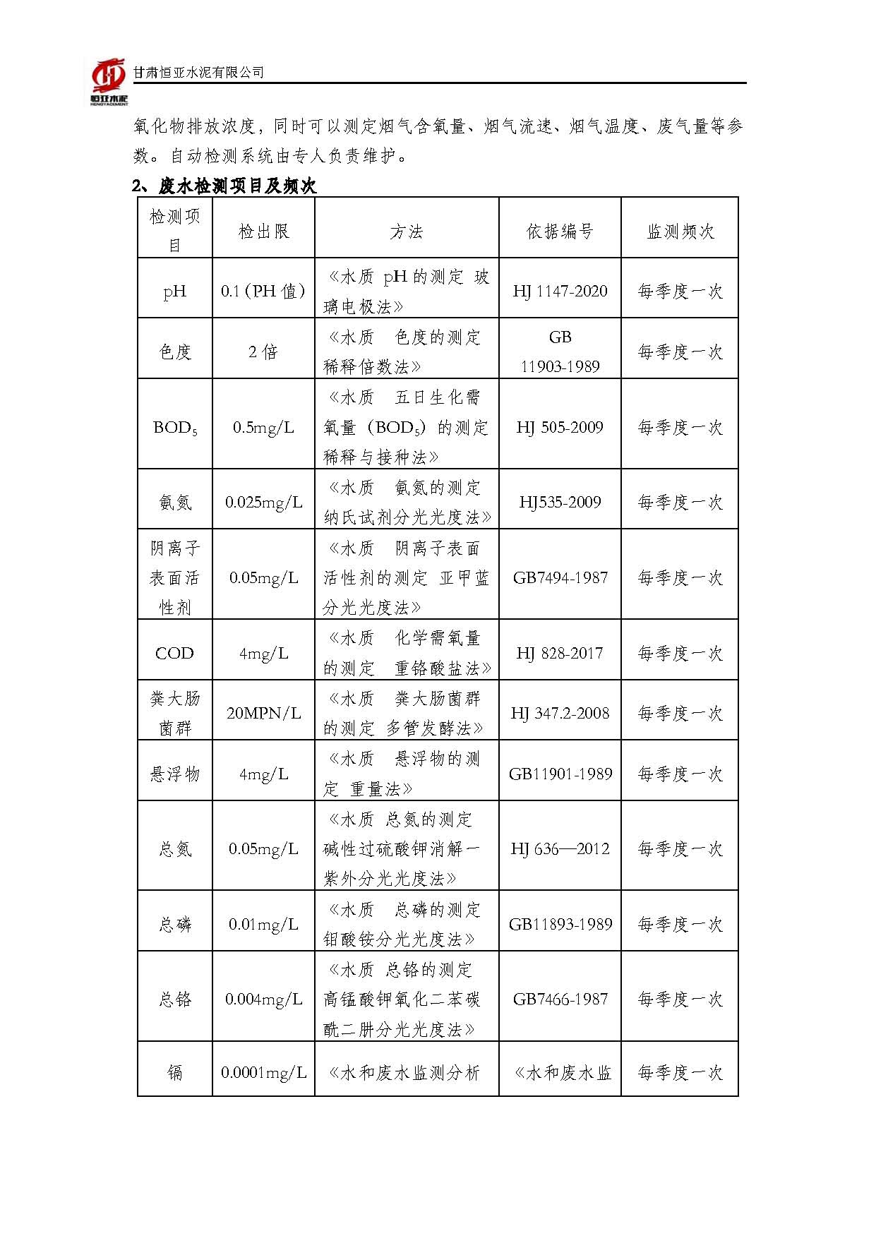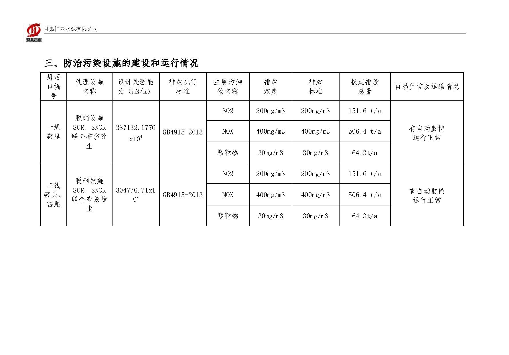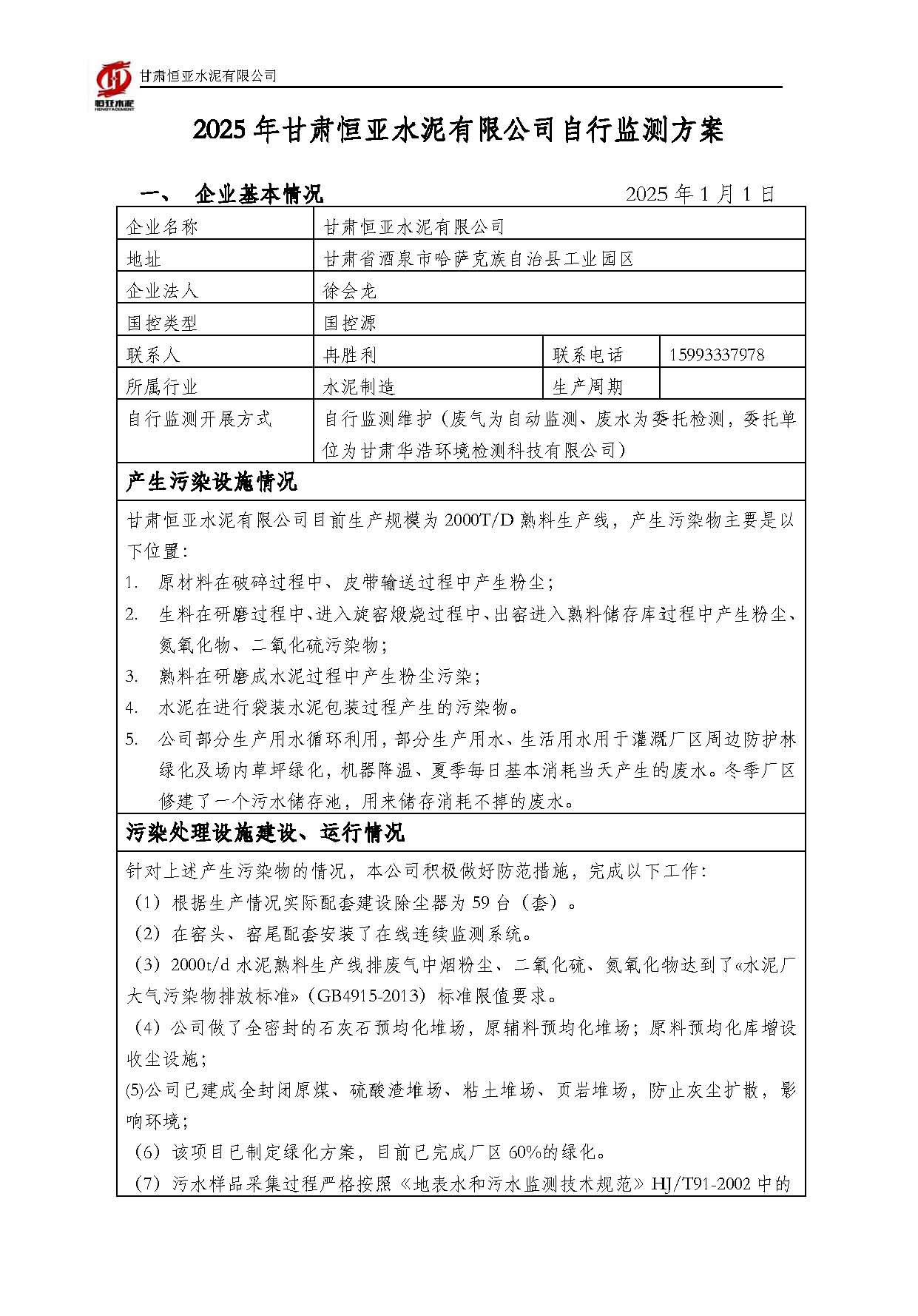 2025甘肃恒亚水泥有限公司环境信息公开